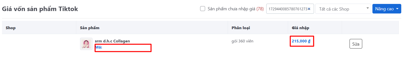 Sau khi chọn Lưu , giá vốn sản phẩm Tiktok được cập nhật theo giá vốn sản phẩm Salework đã liên kết.