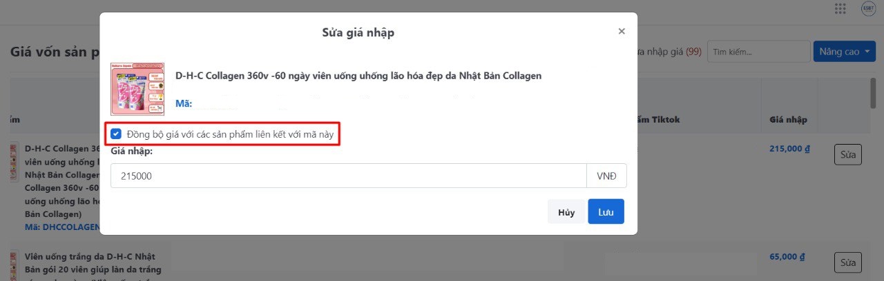 3. Đồng bộ giá vốn Tiktok khi sản phẩm tiktok có liên kết mã SKU với sản phẩm kho Salework