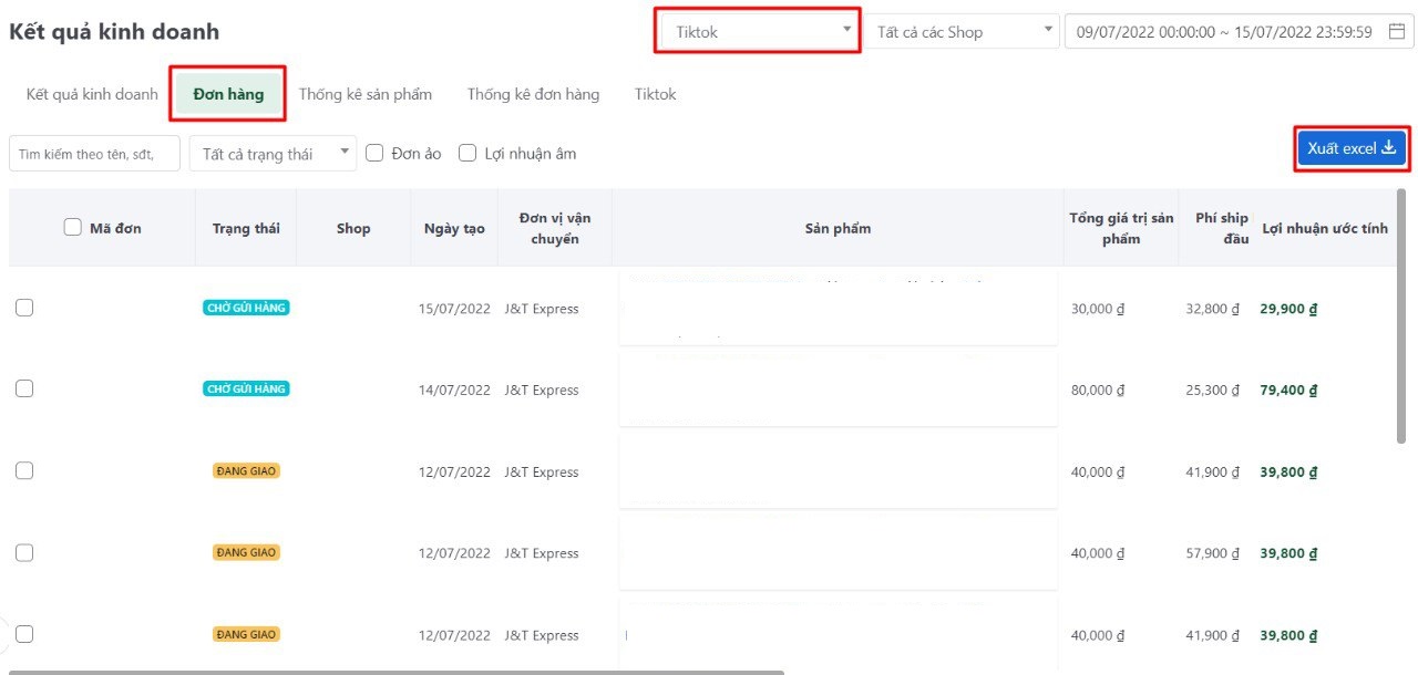 1. Xuất bảng Excel đơn hàng TikTok Shop