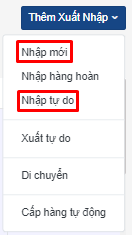 Bước 1: Tại mục Xuất nhập kho chọn Thêm xuất nhập, nhấp chuột vào Nhập mới hoặc Nhập tự do