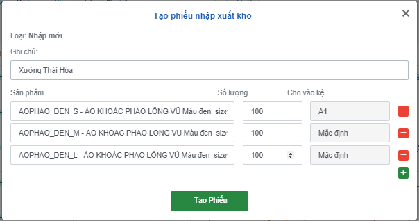 Bước 2: Nhập thông tin phiếu và bấm Tạo phiếu