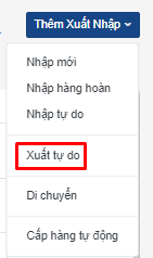 Tại mục Xuất nhập kho chọn Thêm xuất nhập, nhấp chuột vào Xuất tự do.
