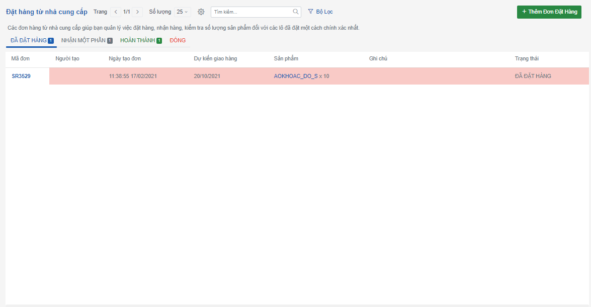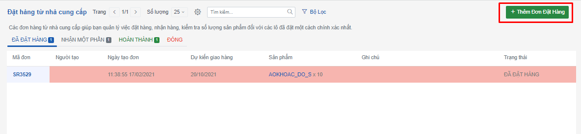 3.2 Xác nhận Đơn đặt hàng để số lượng cộng vào tồn kho