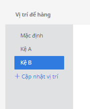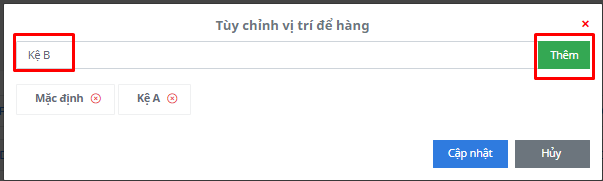 Bấm vào mục Cập nhật vị trí để nhập tên Kệ hàng và bấm chữ Thêm