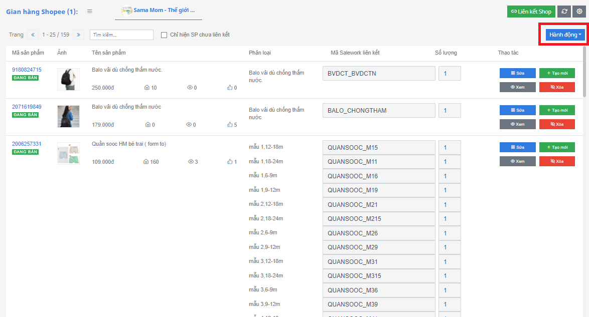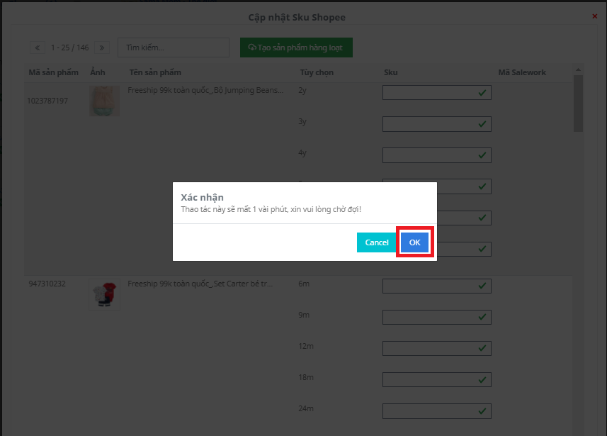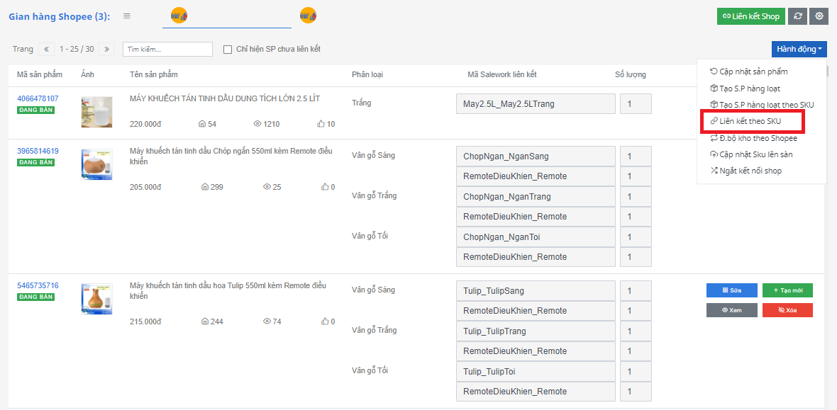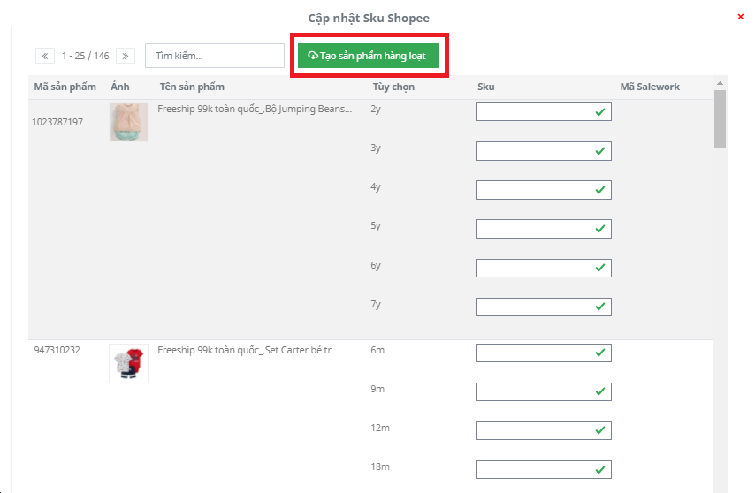 Bước 6: Sau khi tạo sản phẩm hàng loạt theo SKU xong bạn sẽ liên kết sản phẩm theo SKU.