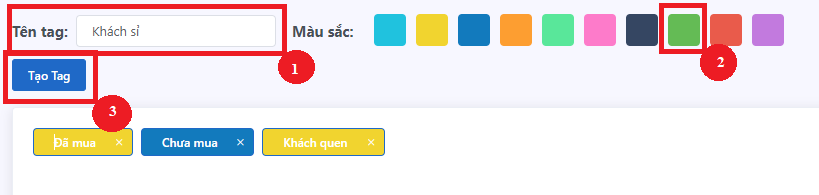 - Trường hợp 2: Nếu bạn muốn tạo tag mới, hãy nhập tên tag bạn muốn tạo, chọn màu sắc và click vào mục Tạo Tag để lưu.