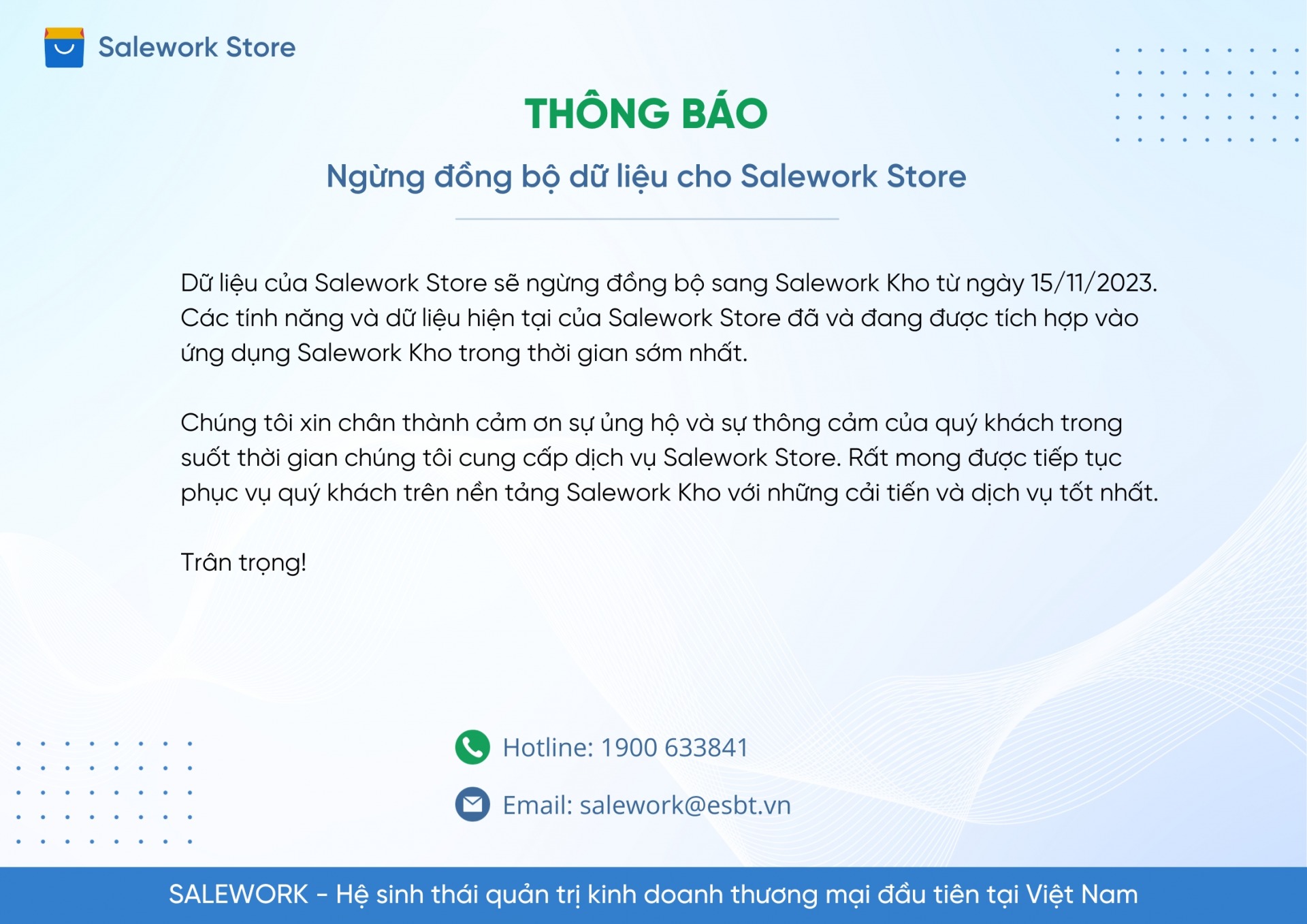 Ngừng cung cấp dịch vụ cho ứng dụng Salework Store