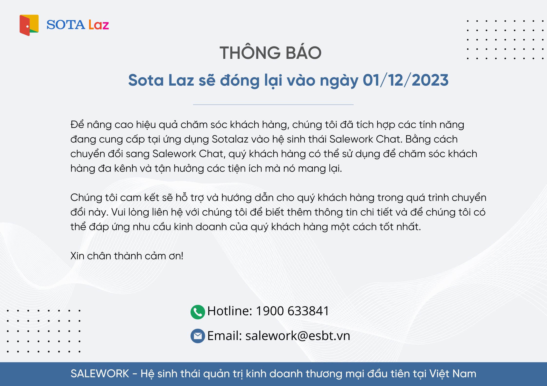 THÔNG BÁO THU PHÍ ỨNG DỤNG SALEWORK CHAT