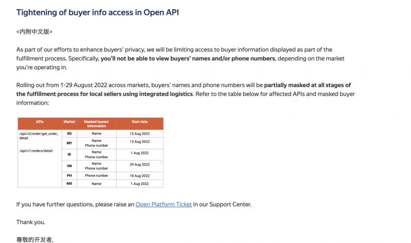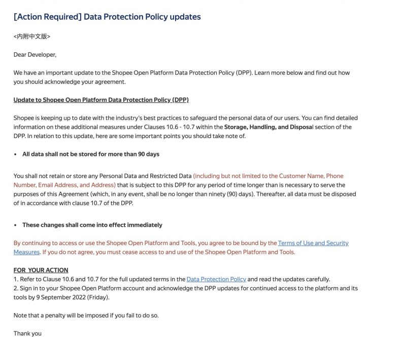 Đội ngũ Salework xin thông báo: Từ ngày 29/8/2022, Sàn thương mại điện tử Shopee sẽ cập nhật chính sách mới nhất về thu thập và sử dụng dữ liệu khách hàng đối với các đơn vị đối tác sử dung API chính thức.
